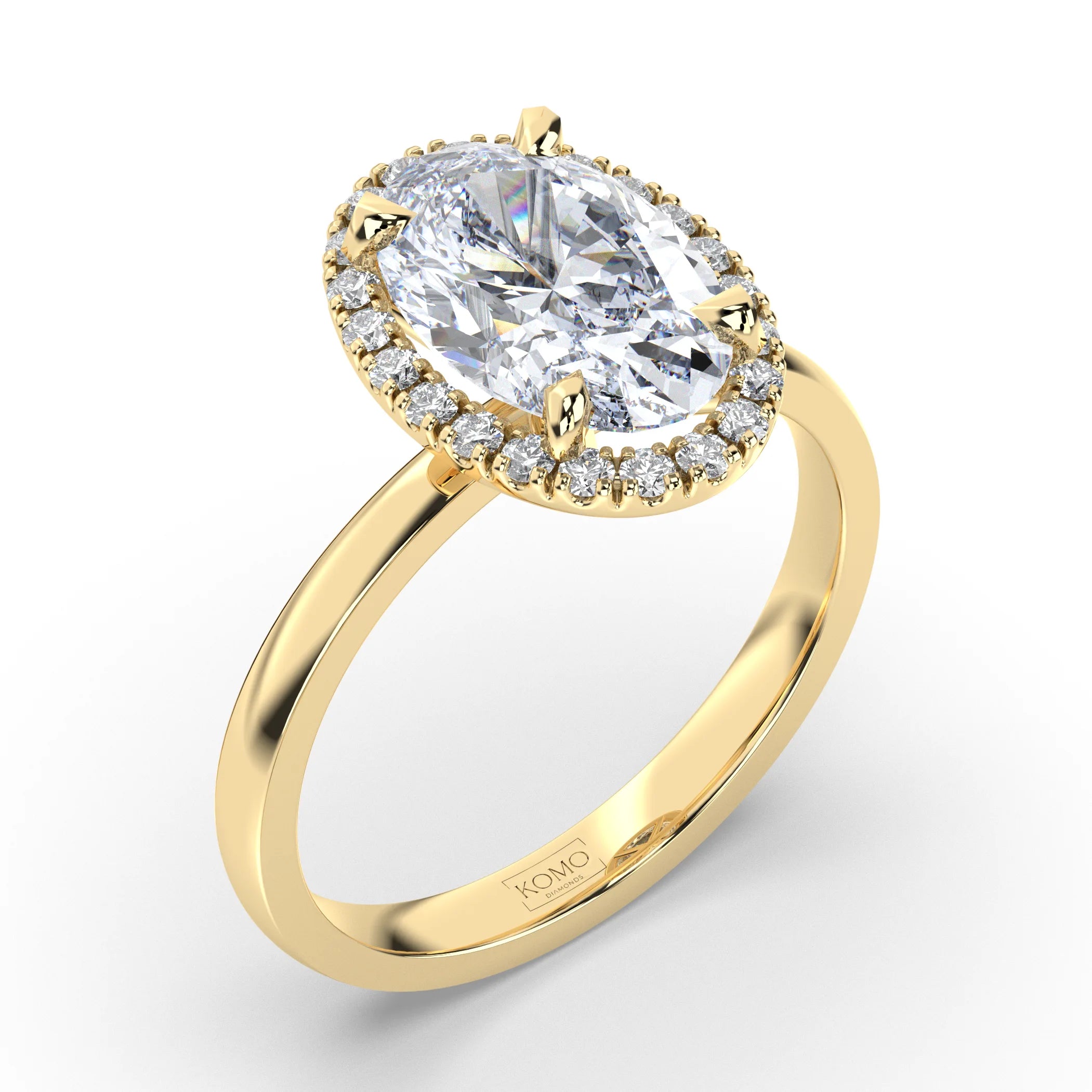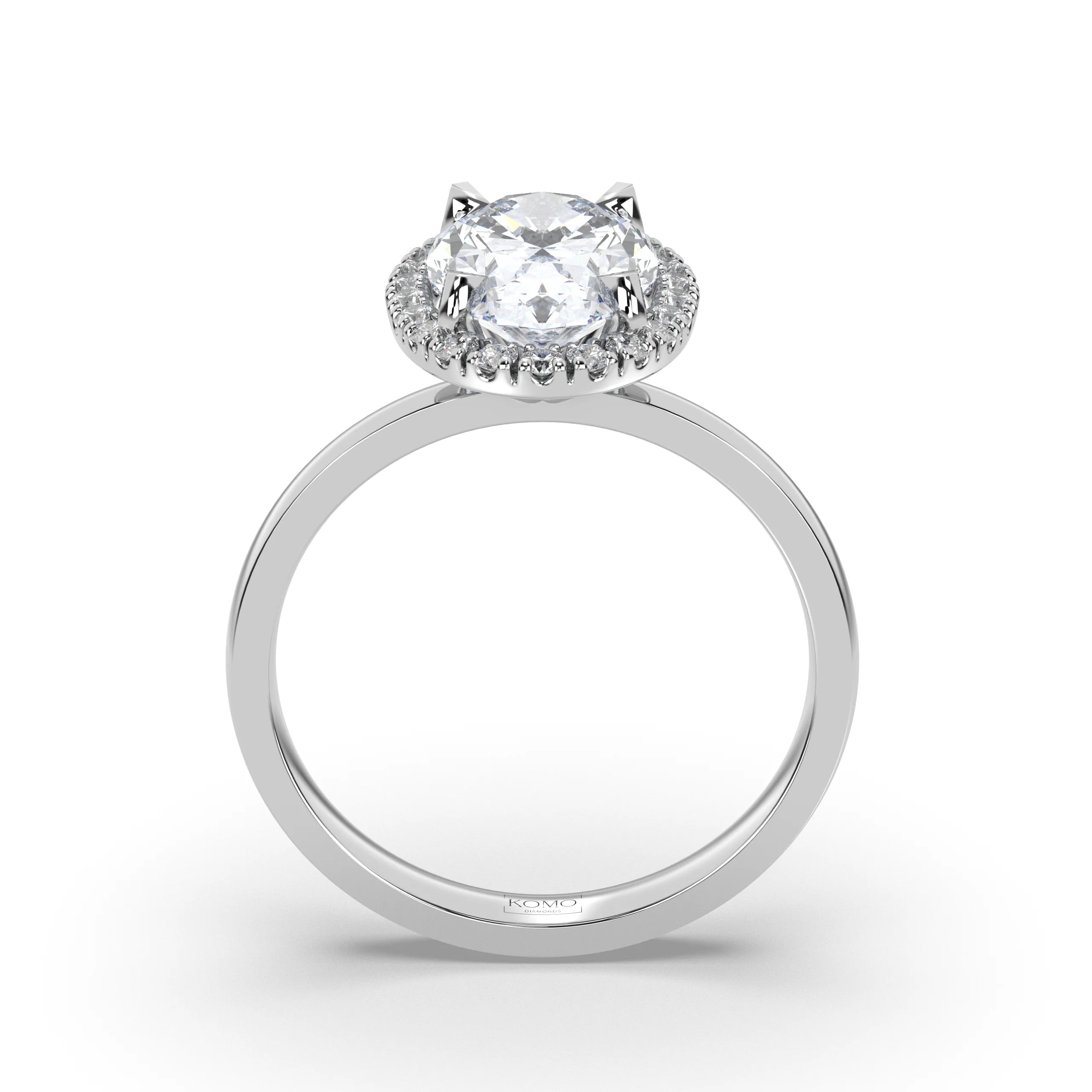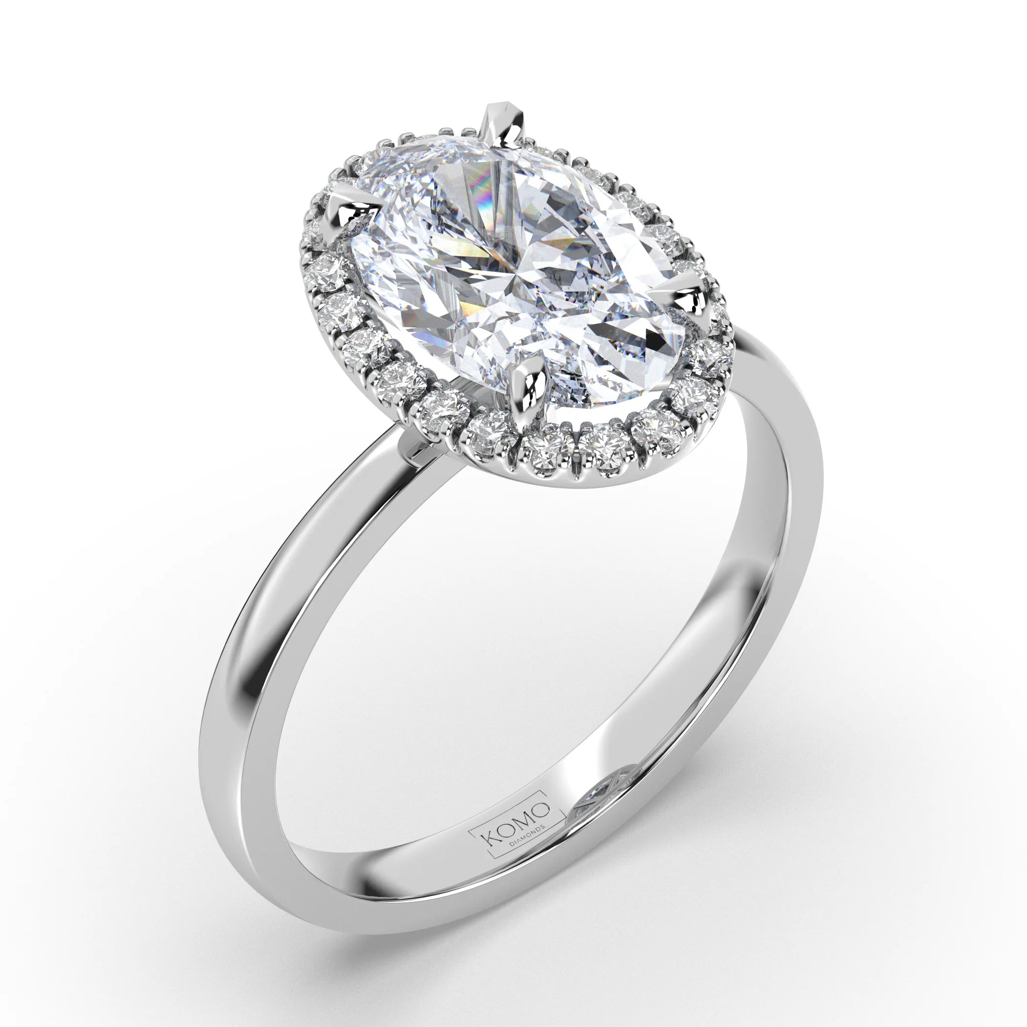 Meet Aurora, where flowing elegance meets ethereal brilliance in a breathtaking celebration of natural beauty and celestial light. This exquisite oval diamond engagement ring from our Celestial collection captures the essence of dawn's first light with its graceful silhouette and glowing halo, designed for the woman who appreciates effortless sophistication and luminous charm.