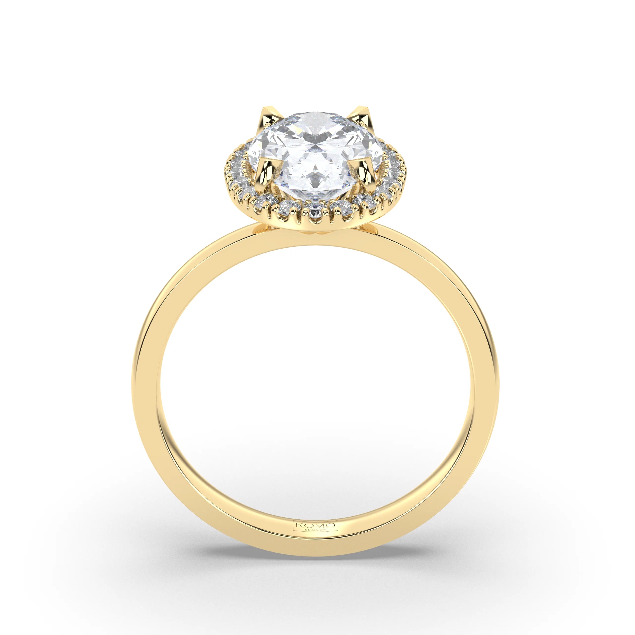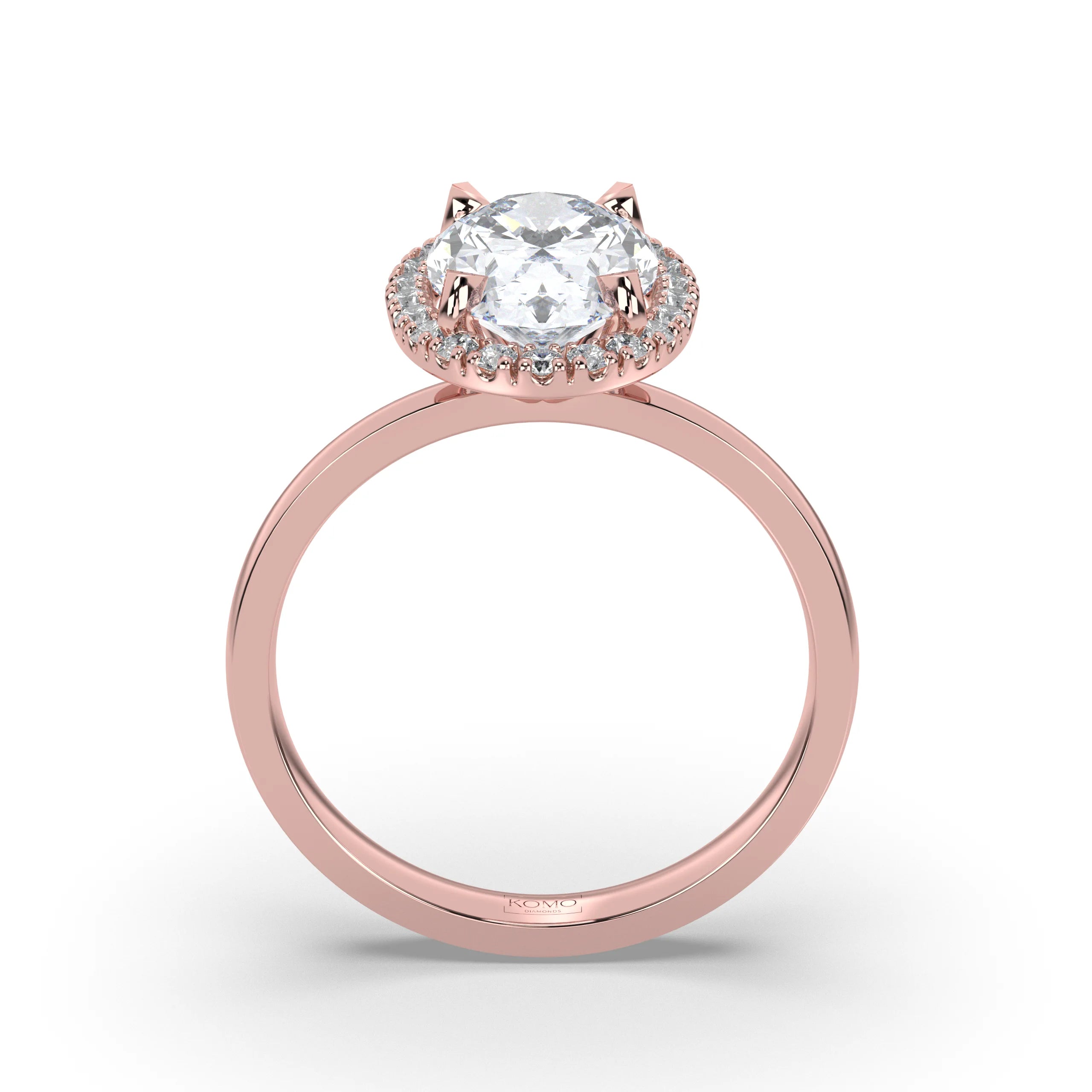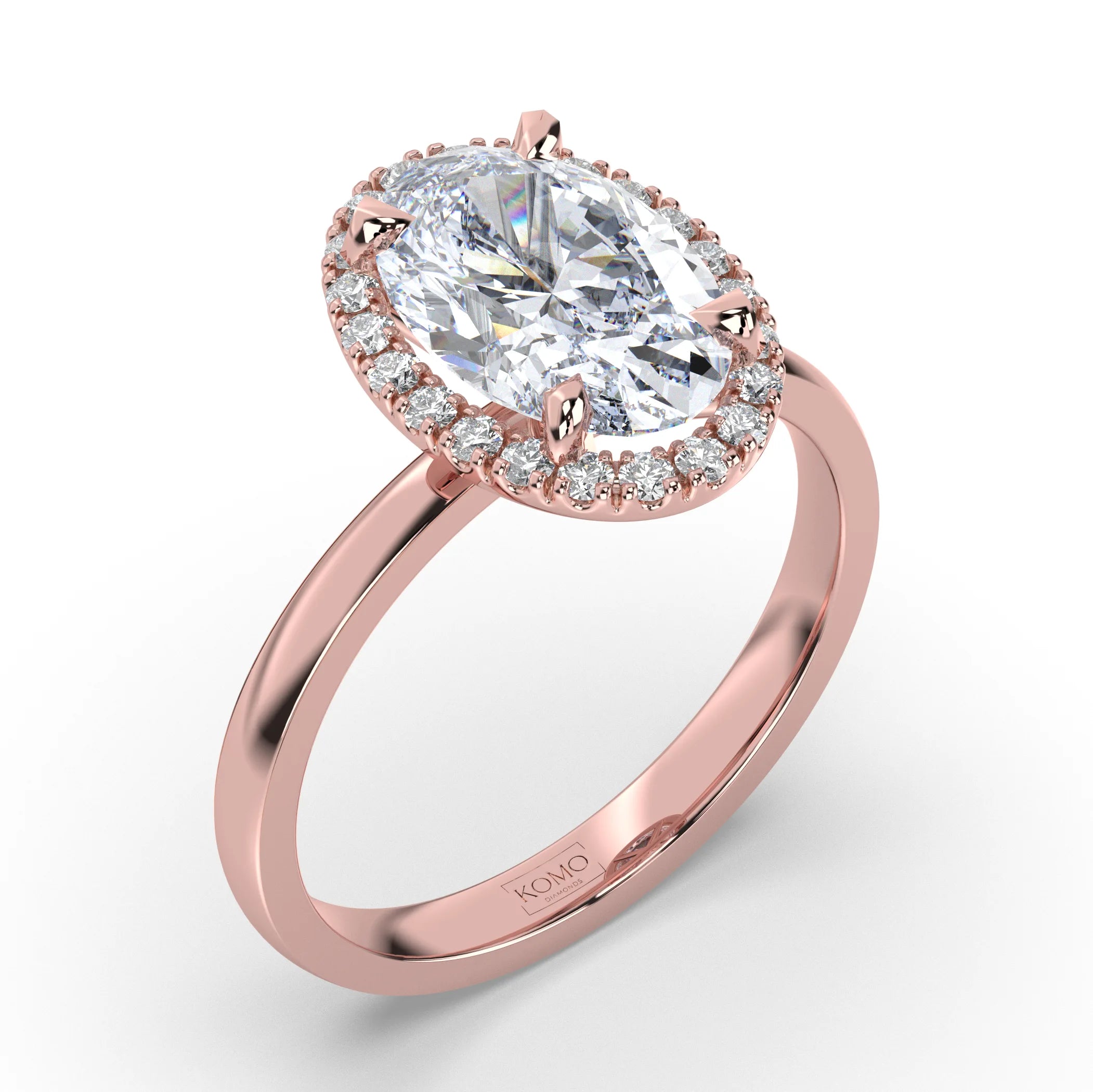 Meet Aurora, where flowing elegance meets ethereal brilliance in a breathtaking celebration of natural beauty and celestial light. This exquisite oval diamond engagement ring from our Celestial collection captures the essence of dawn's first light with its graceful silhouette and glowing halo, designed for the woman who appreciates effortless sophistication and luminous charm.
