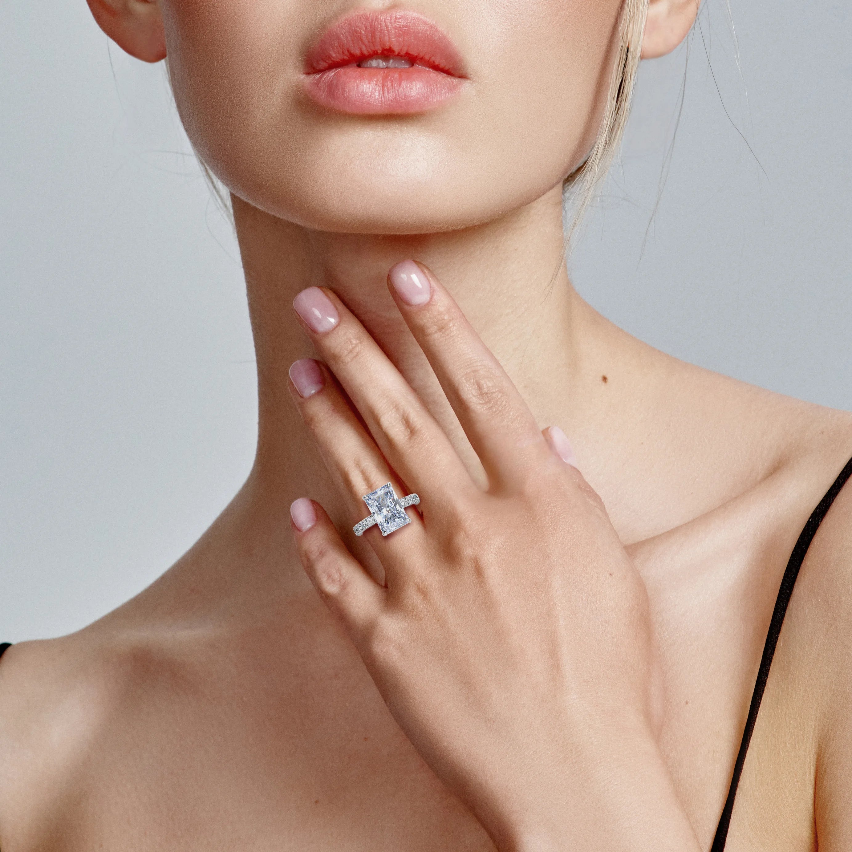 Cassia Lab Grown Diamond Engagement Ring: Bold Radiant-Cut Excellence with Pavé Lab Diamonds