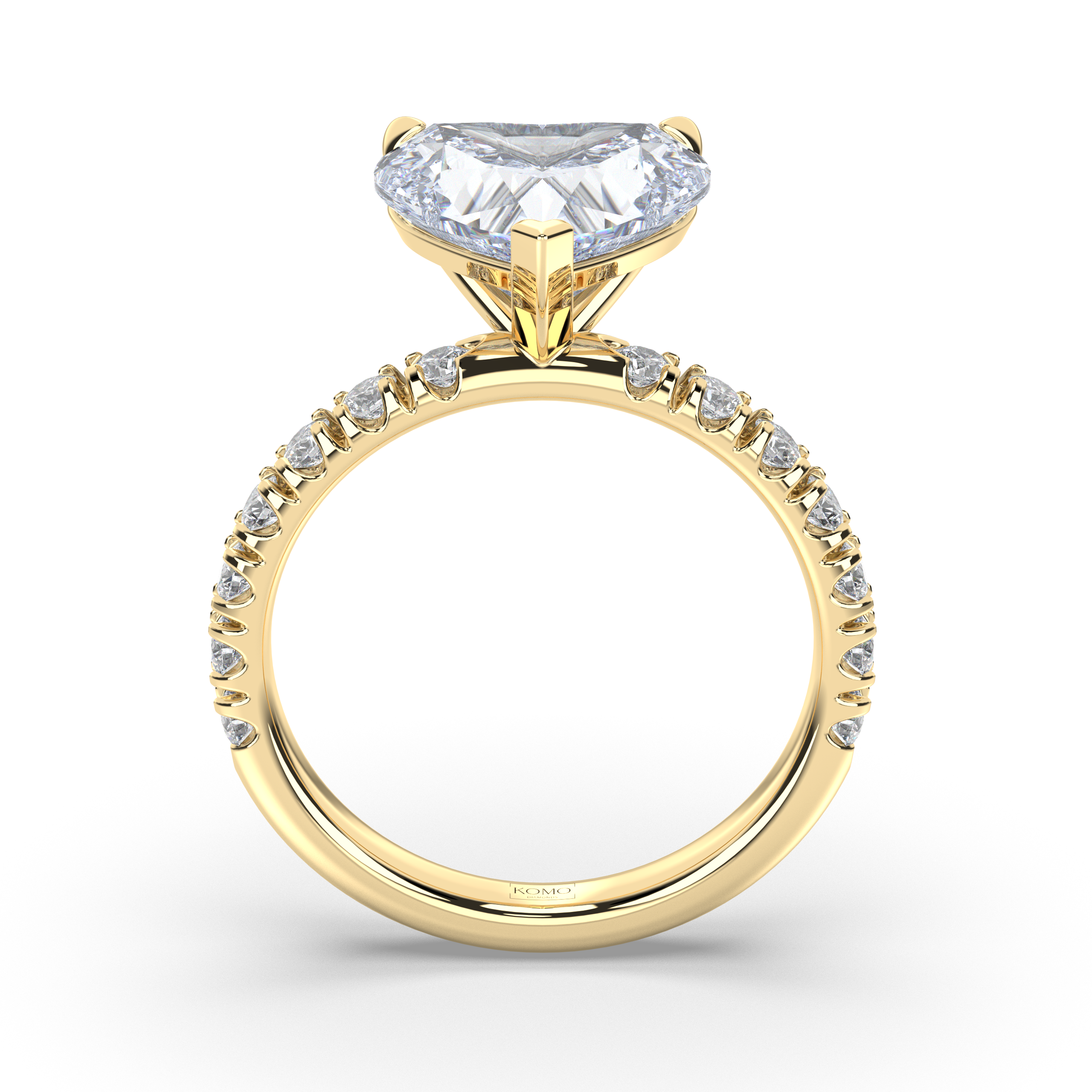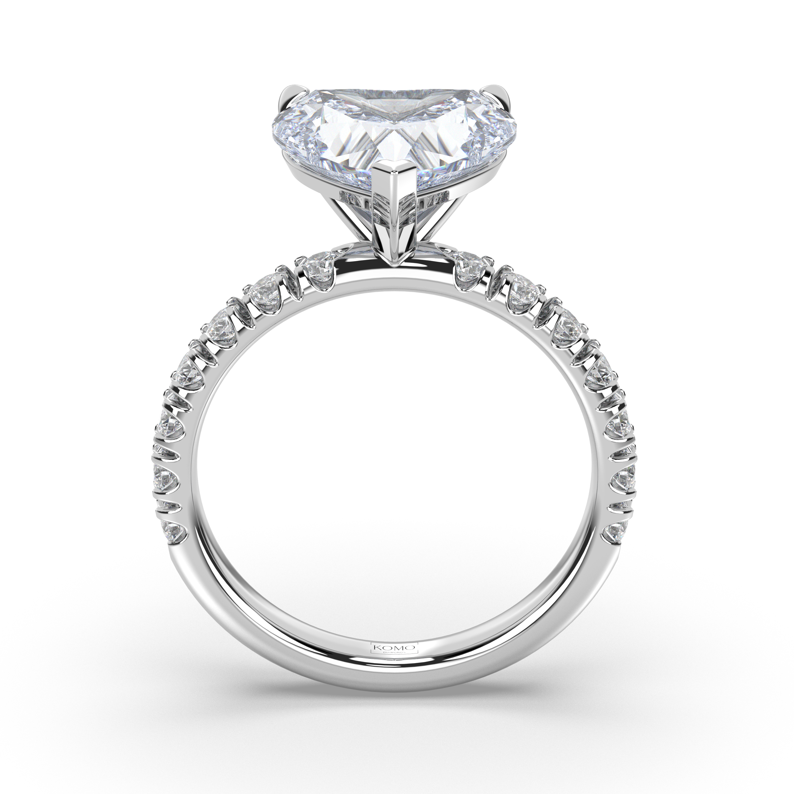 At the center of the Juliette lies a magnificent 1.00 to 3.00 carat heart-shaped lab-grown diamond with exceptional G+ color and VS1+ clarity, certified by IGI for guaranteed quality. The heart cut is one of the most technically challenging shapes to master, requiring perfect symmetry and proportion to achieve its distinctive romantic silhouette and captivating brilliance.