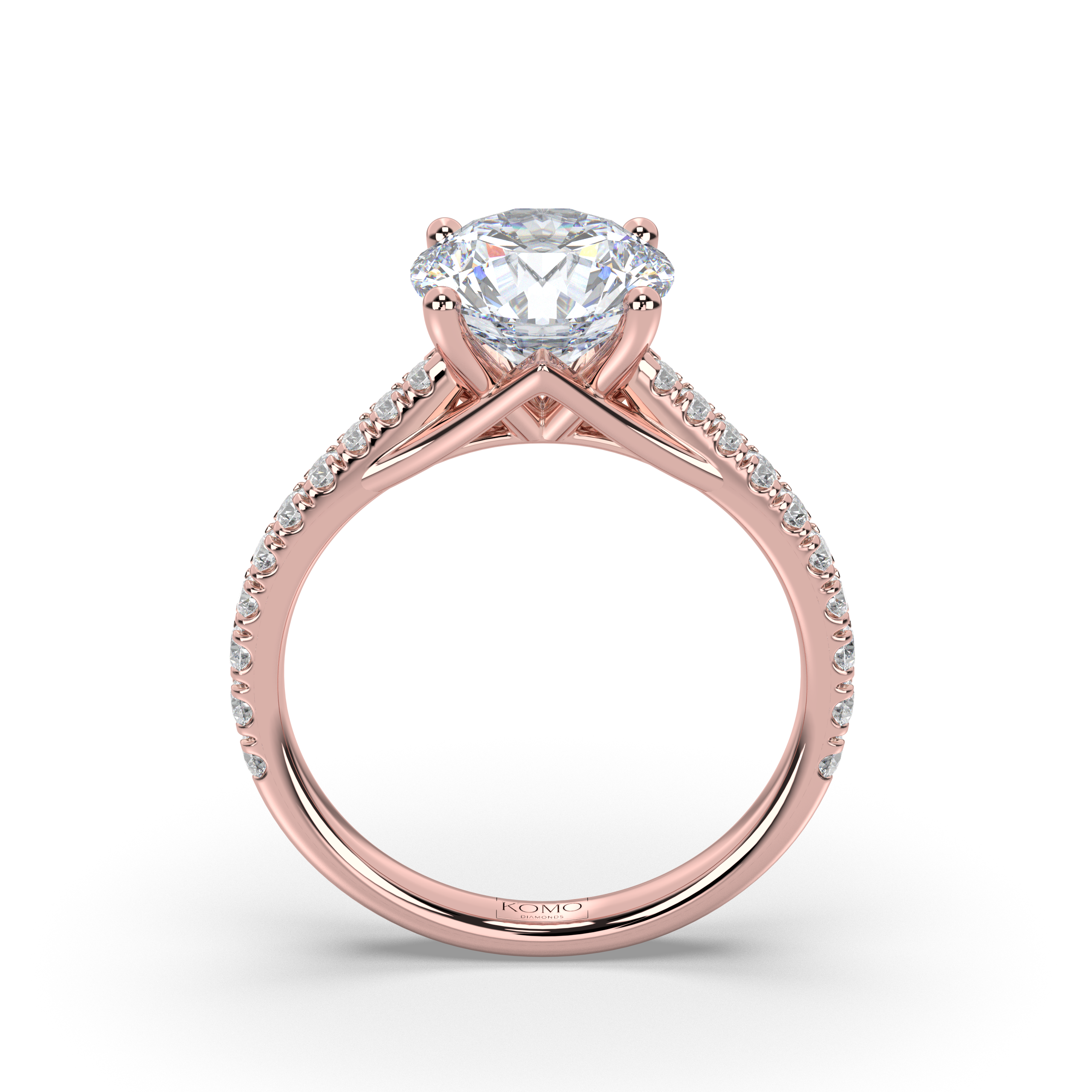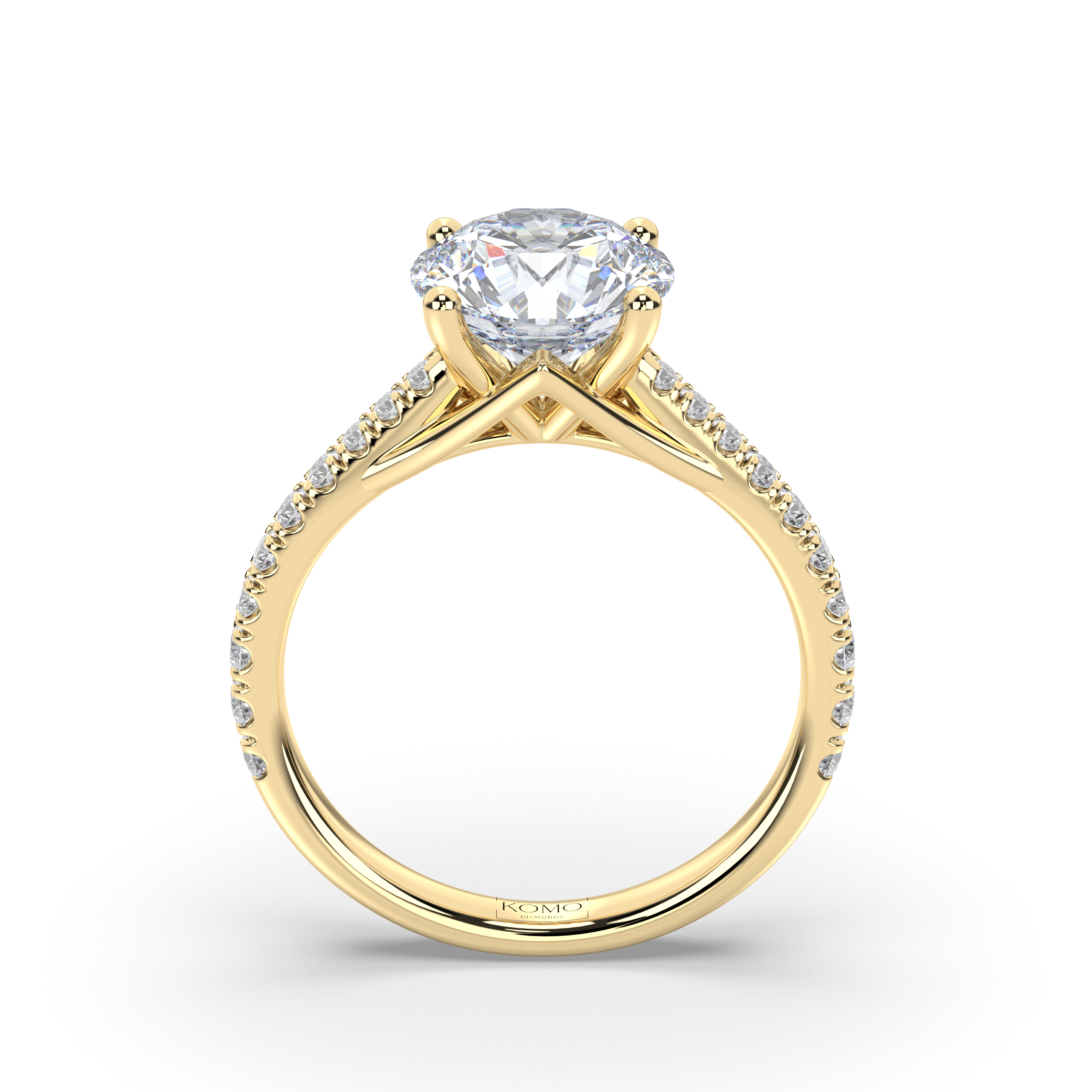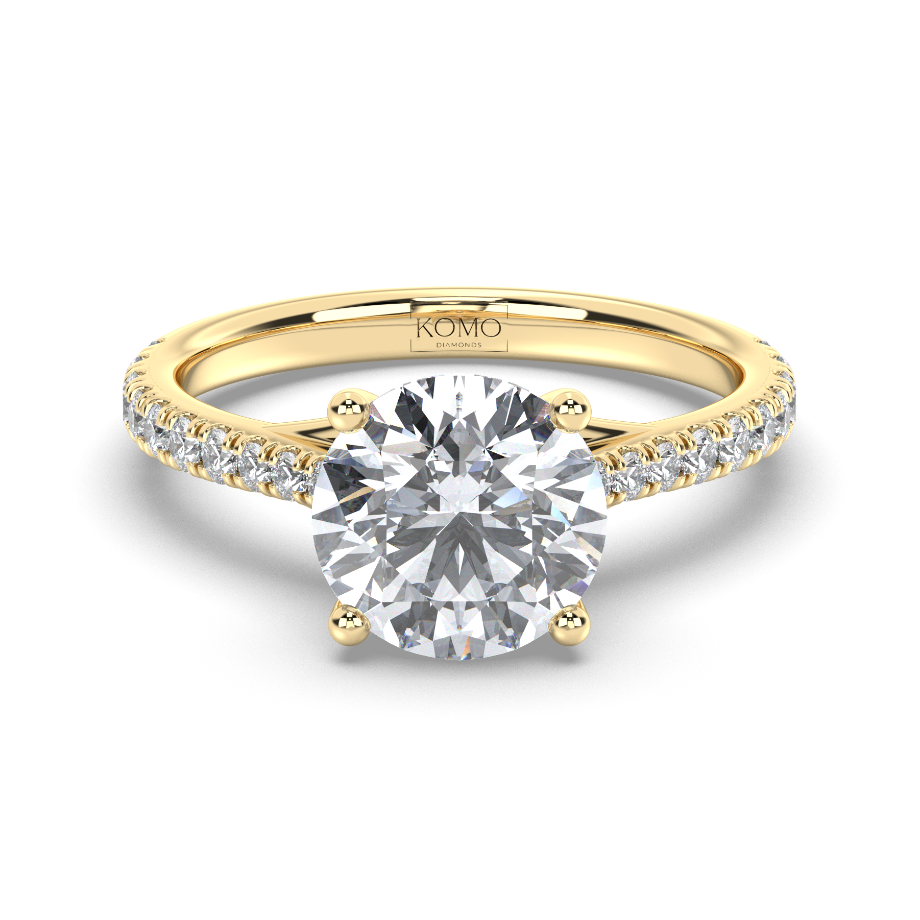 Meet Nova, where architectural grace meets explosive brilliance in a stunning celebration of celestial light. This magnificent round brilliant diamond engagement ring from our Celestial collection captures the essence of a brilliant star with its elevated cathedral setting and sparkling pavé accents, designed for the woman who appreciates both structural sophistication and weightless radiance.