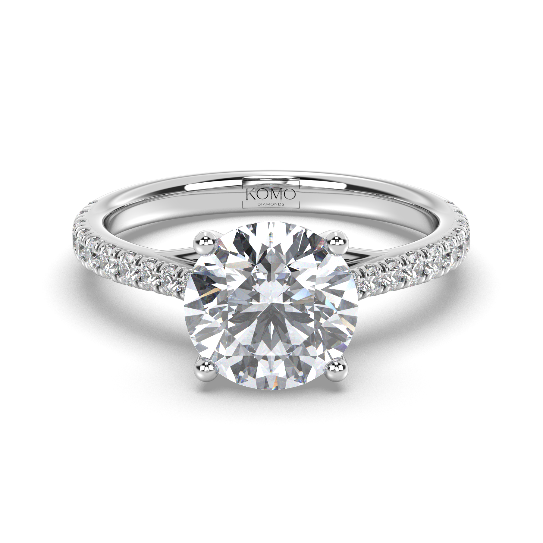 - Luminous Accents: Pavé shoulders and band create continuous sparkle that enhances the center stone's brilliance