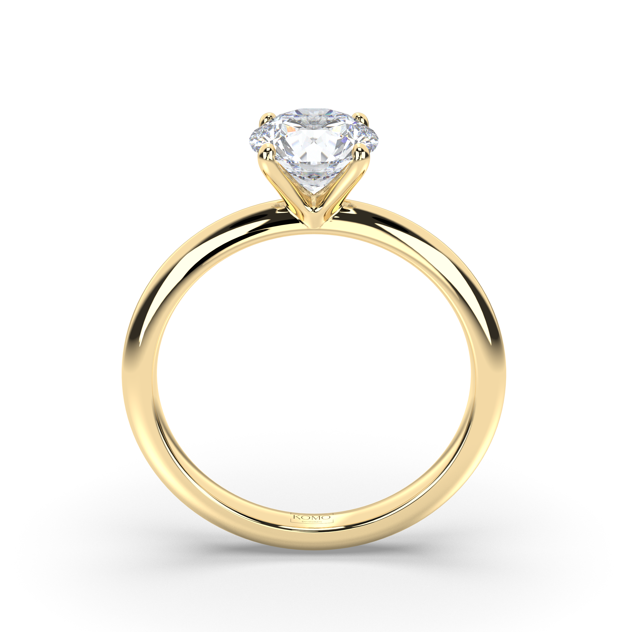 The design celebrates celestial minimalism with its unique cushion-shaped mounting that frames the round brilliant while maintaining clean, geometric lines. The four-prong setting elevates the diamond in an airy basket, allowing maximum light to flow through from every angle while the soft corners of the cushion mounting add subtle sophistication to the classic round stone.
