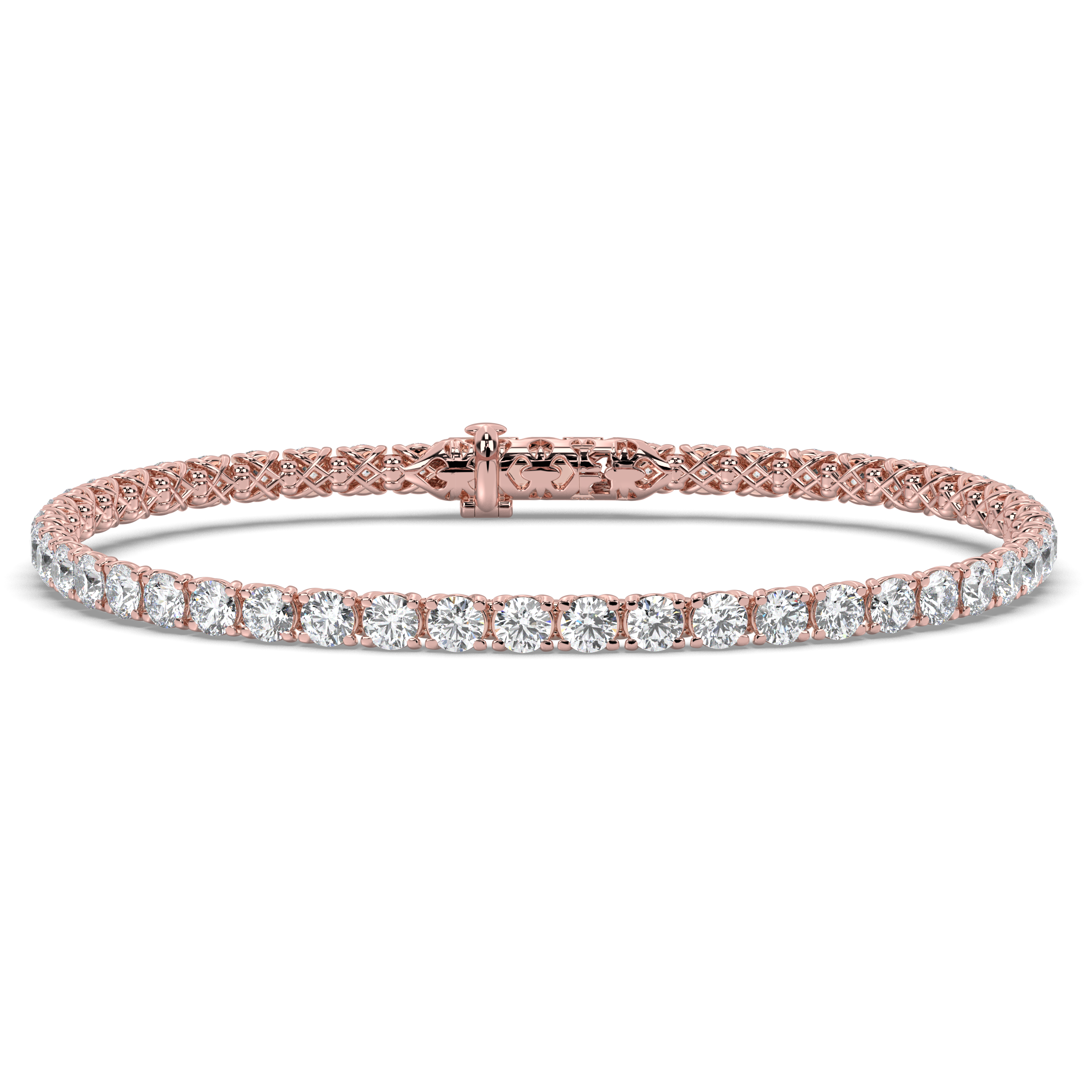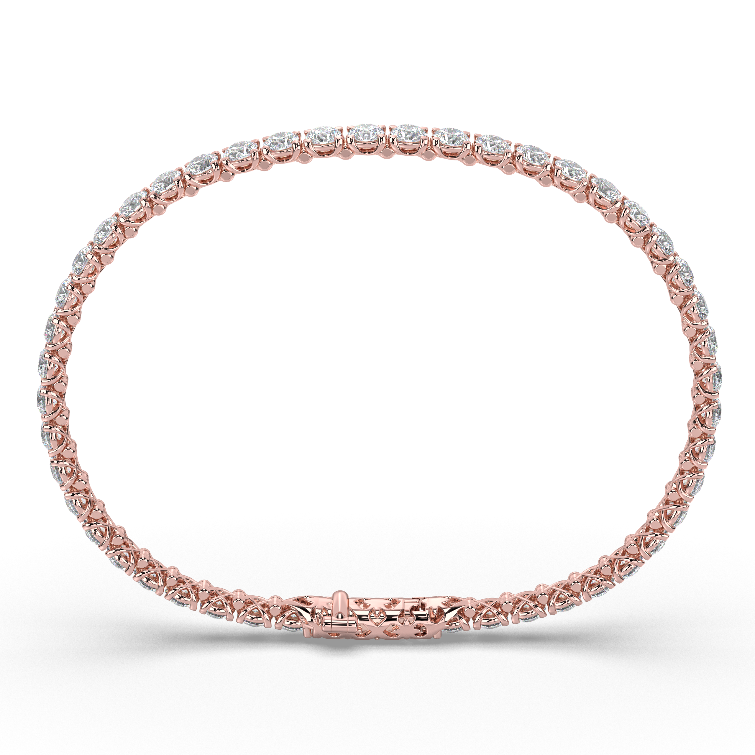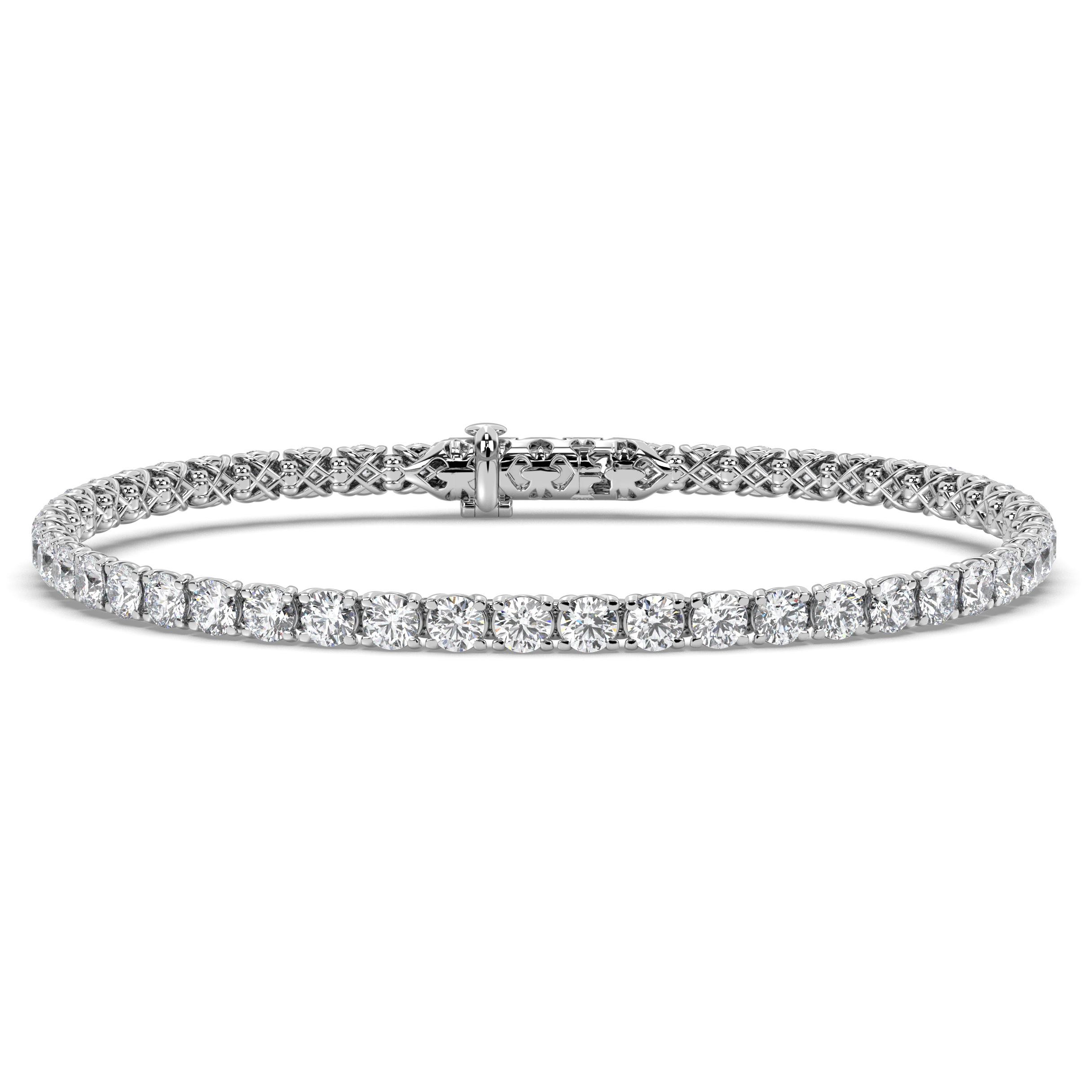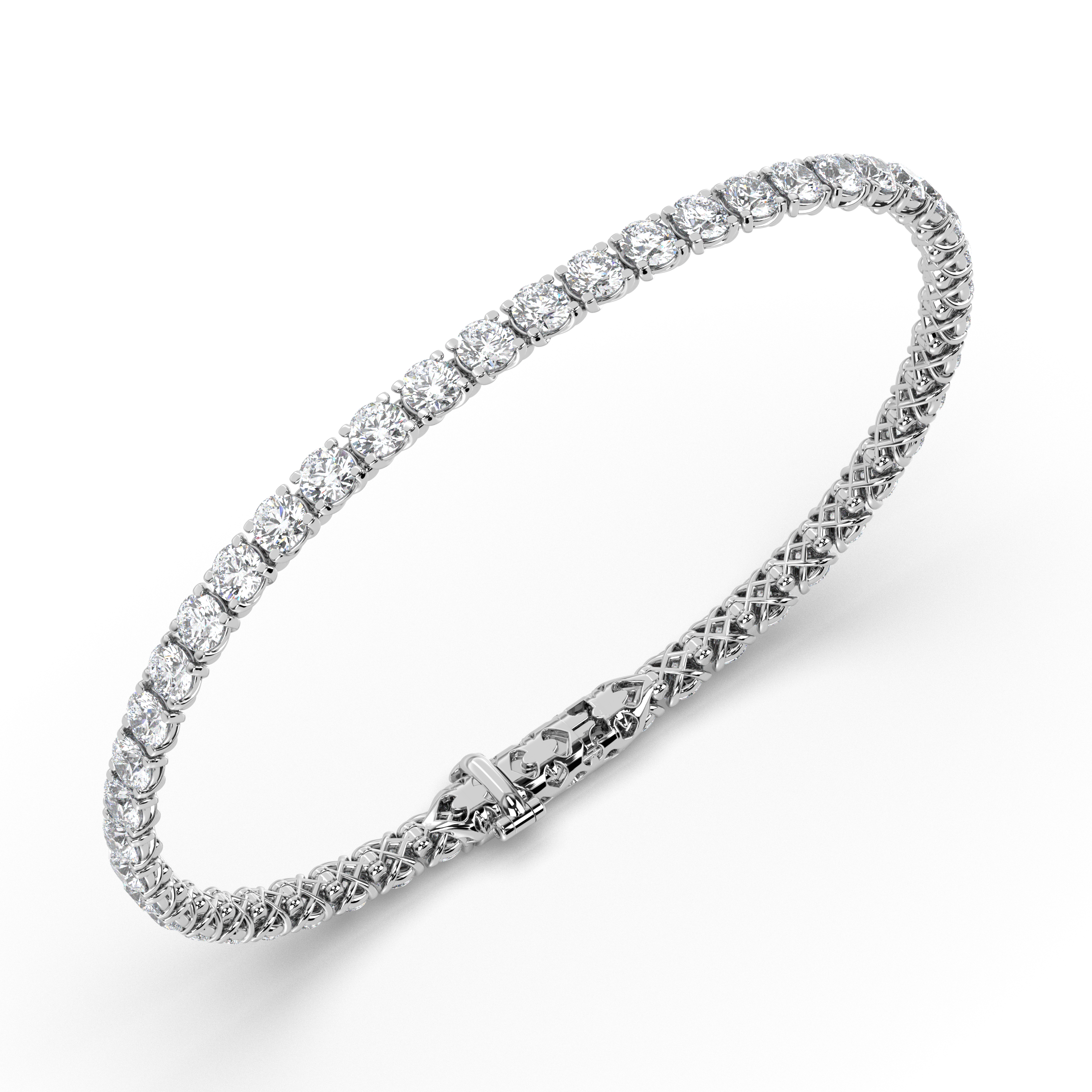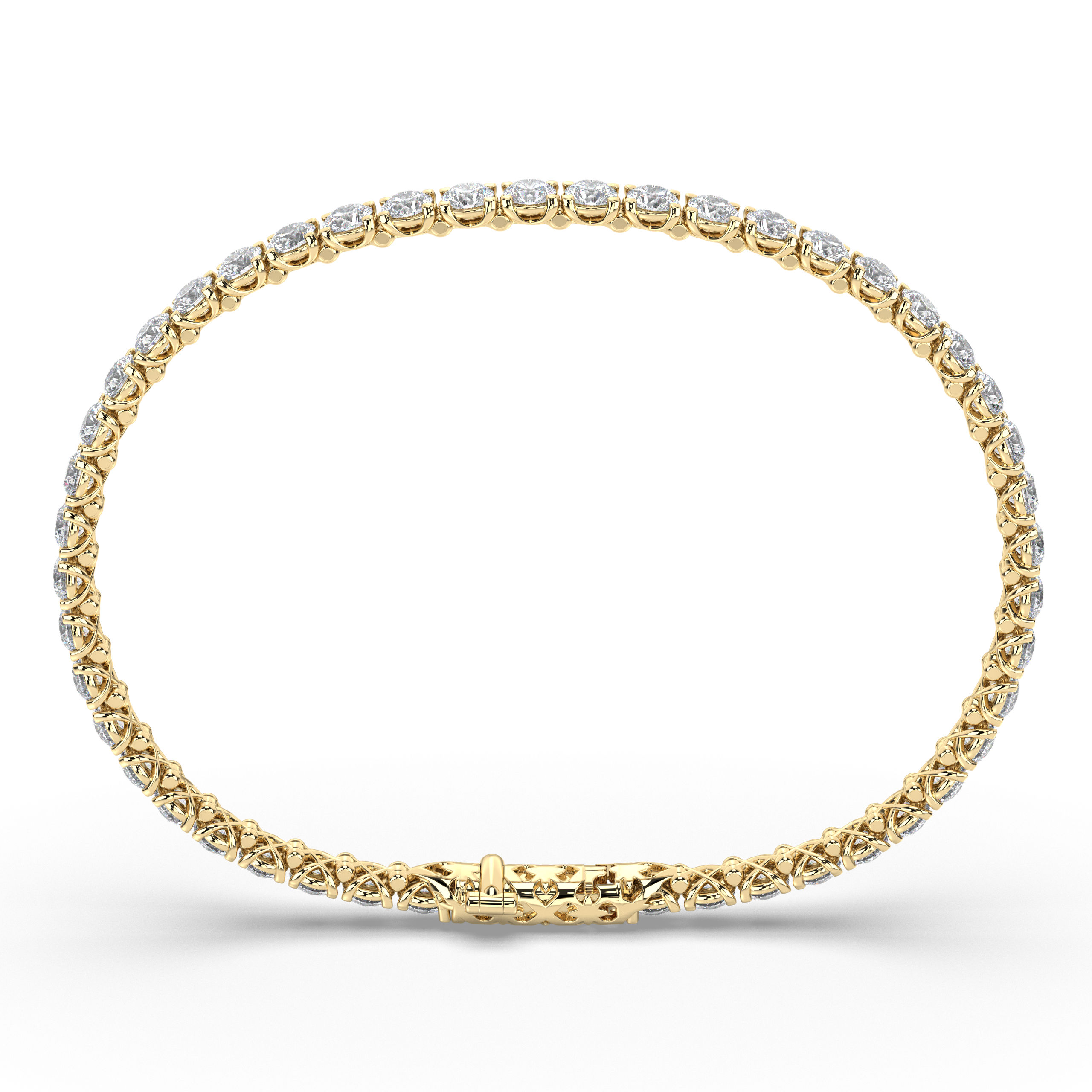 Each diamond in this refined bracelet is an IGI-certified lab-grown stone featuring exceptional G+ color and VS1+ clarity, created using advanced CVD/HPHT technology. The round brilliant cuts are carefully matched for consistency and brilliance, ensuring perfect uniformity and maximum sparkle as light reflects through each precisely positioned stone.